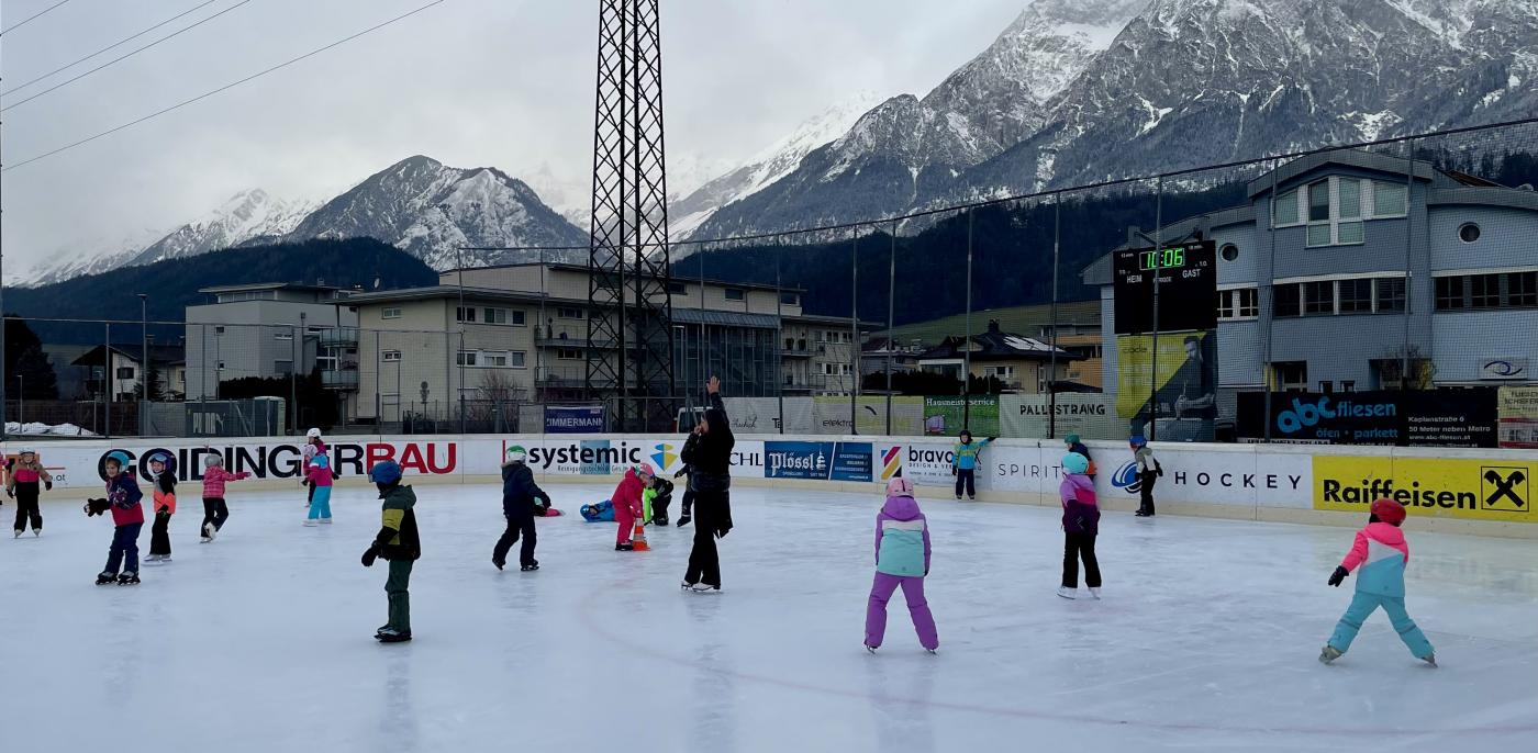 Die Eisbären schnallten sich einen Vormittag lang die Eislaufschuhe an und machten den Eislaufplatz in Wattens unsicher. Unterrichtet wurden sie von einer professionellen Eiskunstläuferin vom Tiroler Schulsportservice.