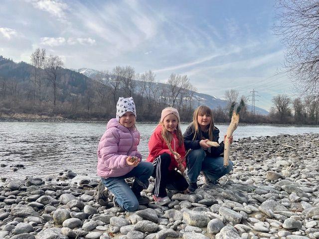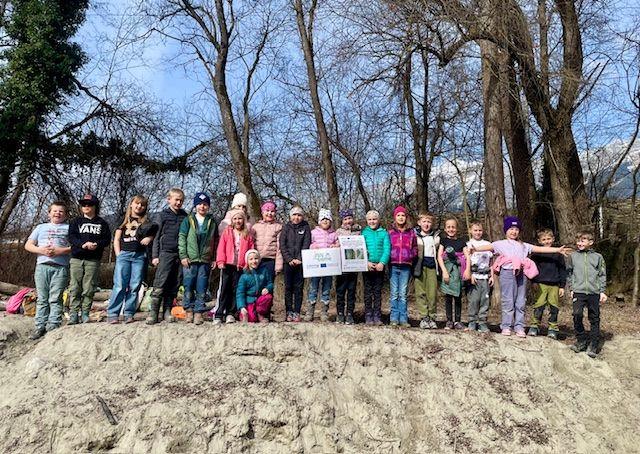 Gemeinsam mit zwei Biologinnen von Natopia verbrachten die Zweitklassler einen abenteuerlichen Vormittag am Inn.