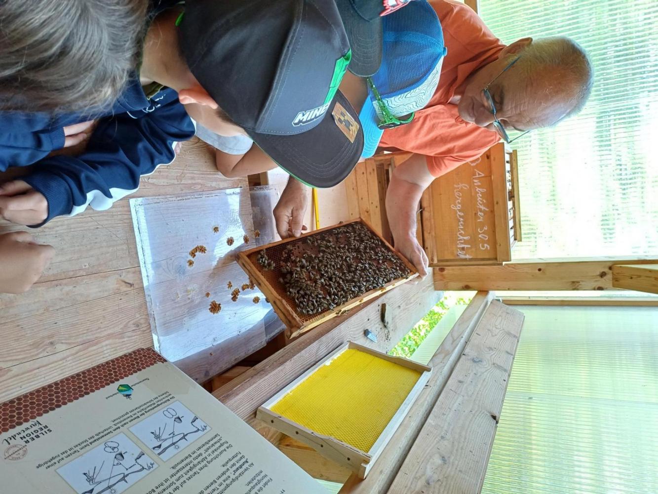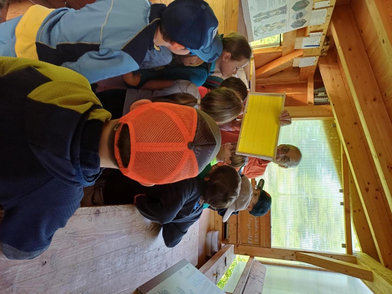 Am 12.6.25 wanderten die 3.Klassen zum Rablhaus. Edi erklärte uns im Schaubienenstock viel Interessantes über Bienen. Im Rablhaus erforschten wir mit Andrea die Ausstellungsräume und beantworteten dabei knifflige Quizfragen. Mit Honigbroten im Bauch endete dieser spannende Vormittag.