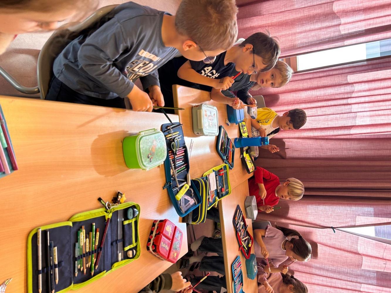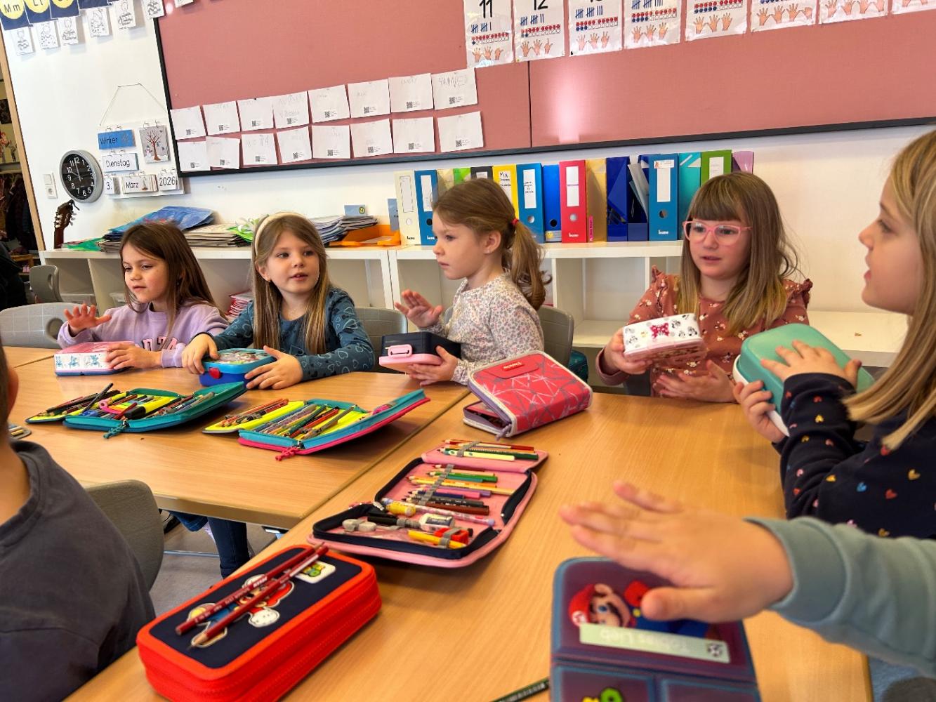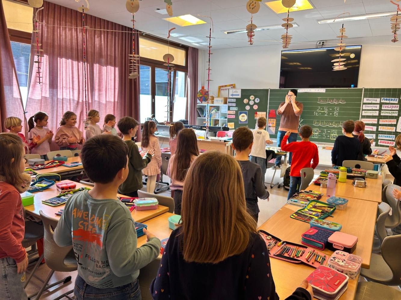 Mit viel Begeisterung und Bewegung lernten die Kinder verschiedene Rhythmusübungen kennen. Dabei wurde schnell klar: Musikinstrumente können überall sein! Aus ganz alltäglichen Dingen wie Jausenboxen und Stiften entstanden plötzlich rhythmische Begleiter, mit denen die Schülerinnen und Schüler gemeinsam musizierten.